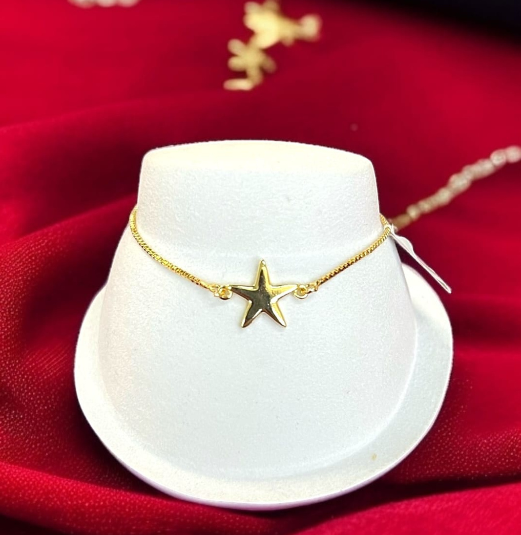 Destaca tu estilo con esta delicada pulsera elaborada en chapa de oro de 18 quilates. Su diseño minimalista presenta una estrella central que simboliza luz, guía y elegancia. La cadena fina y ajustable aporta un toque sutil y moderno, perfecta para uso diario o para complementar cualquier look sofisticado.