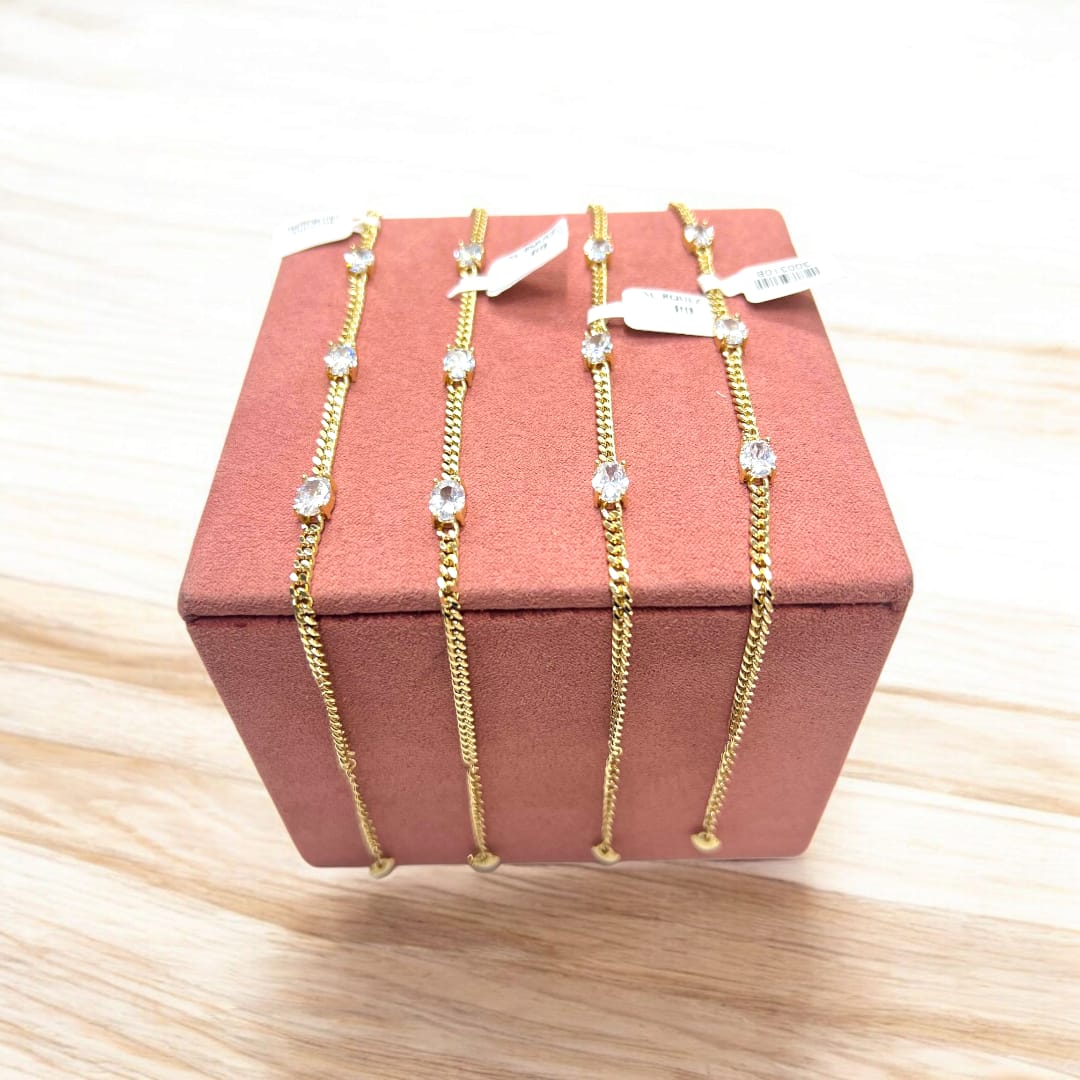 Pulsera de chapa de oro 18k, 18 cm + extensión. Cadena con cristales. Elegancia luminosa y atemporal.